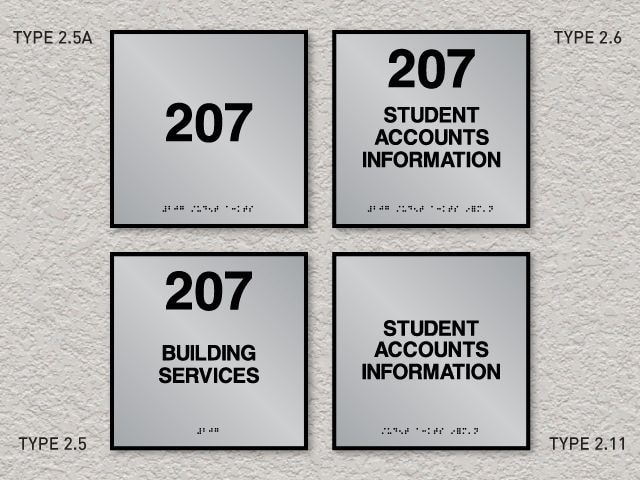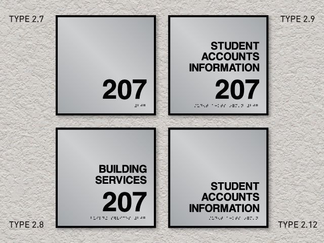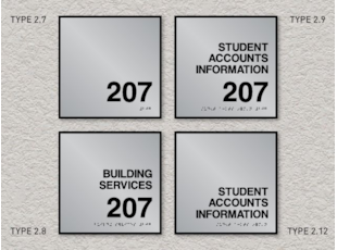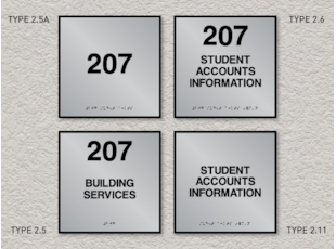 Numerous types of ADA compliant signs are required for facilities through the Americans with Disabilities Act; room identification signs are components of these signage requirements. The Signs By Tomorrow, Arlington Heights ADA Sign System conveys the required ADA compliant messages while contributing to the overall design theme of the building's interior surroundings. Don't sacrifice form for function; our Sign System provides the best of both worlds.