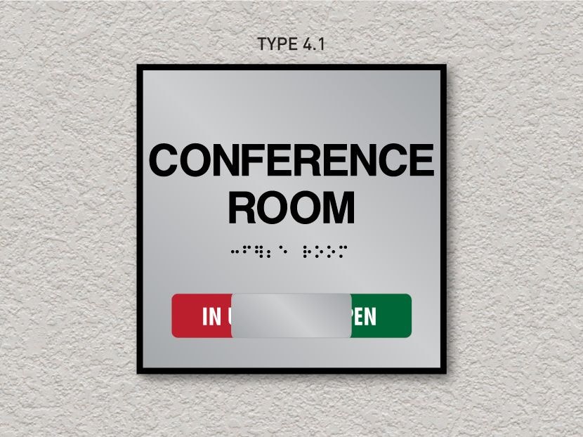 The addition of Custom ADA Slider Signs to your office, school or business is a great way to show if a conference room is in use or available, a restroom is occupied or not, or if someone is in or out of their office. Using sliding business signs is a quick and convenient way to display the status of the room avoiding confusion or walking in on something important. A simple back and forth slider will display the status as needed.