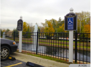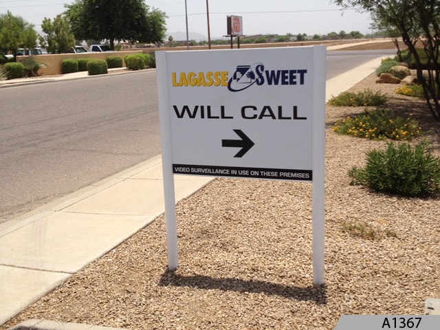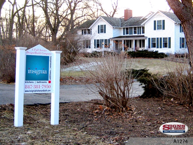 Most panels on these signs are printed on two sides for excellent visibility to passersby from both directions. Some people even add illumination to enhance visibility at dawn, dusk and nighttime. We can also custom design your post and panel signage with your name, logo, colors and any other information you want to include.