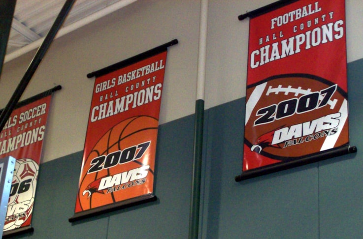 Indoors or outdoors, our flags and flag banners can be showcased in a variety of ways. Fly them from a flagpole. Hang them from a ceiling or overhang. Tie them to a fence, or mount your custom flag on a wall!