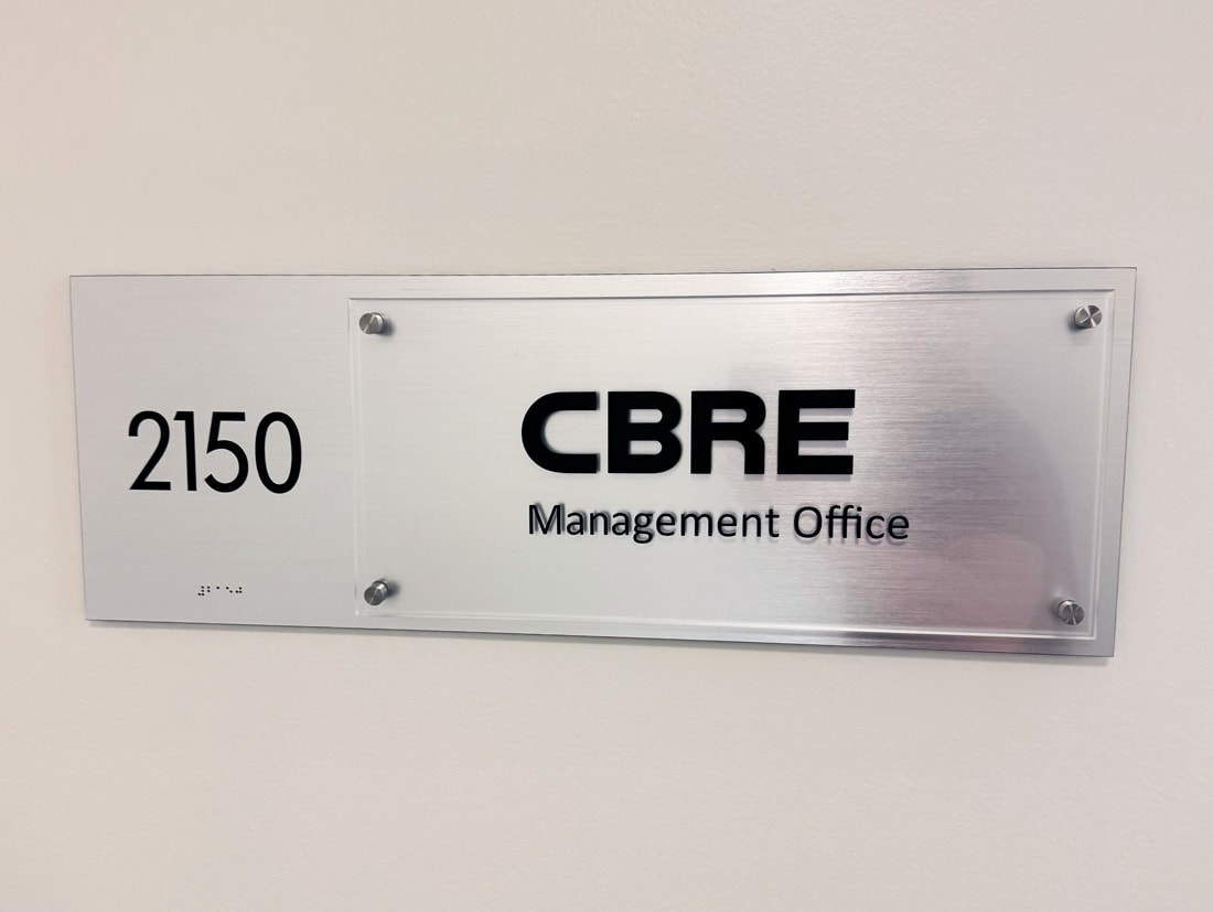 Acrylic with stand-off signs can be designed with vinyl graphics, laser engraving, or both. At Signs By Tomorrow of Denver Central, the design possibilities are endless. Our designers and signage consultants are available to assist you in designing office signage that is a reflection of your brand.