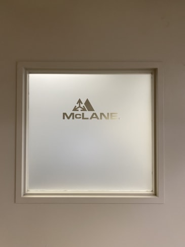 Etched glass vinyl: Often displaying logos, abstract designs or selected graphics representing your business, our etched glass vinyl adheres to glass via an adhesive backing or static cling. Many of our clients use etched glass vinyl for decorative or branding purposes, but it’s also great for adding a sense of privacy in areas like offices or conference rooms.