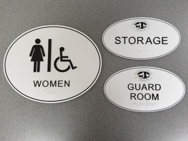 Signs By Tomorrow Frederick is a classic signage organization that offers impactful communication services to companies in the Frederick, MD, region. We can also help you stay compliant with the Americans with Disabilities Act (ADA) guidelines by designing custom handicap accessible signage that fits in with your unique brand attributes. As a America's number one signage organization, we pride ourselves in making well-made, quality signs that will last a long time. Your office or retail space can have handicap accessible signs that still maintain a cohesive style, colors and overall attractive interior appearance. Speak with our experienced designers to customize handicap accessible signs that you can display to designate room numbers, bathrooms and exits.