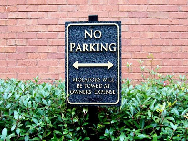 Parking lot property signs: These signs alert drivers to security measures or other policies. “No soliciting,” “Diagonal parking” and “Additional parking in rear” are examples of typical parking lot property signs.
