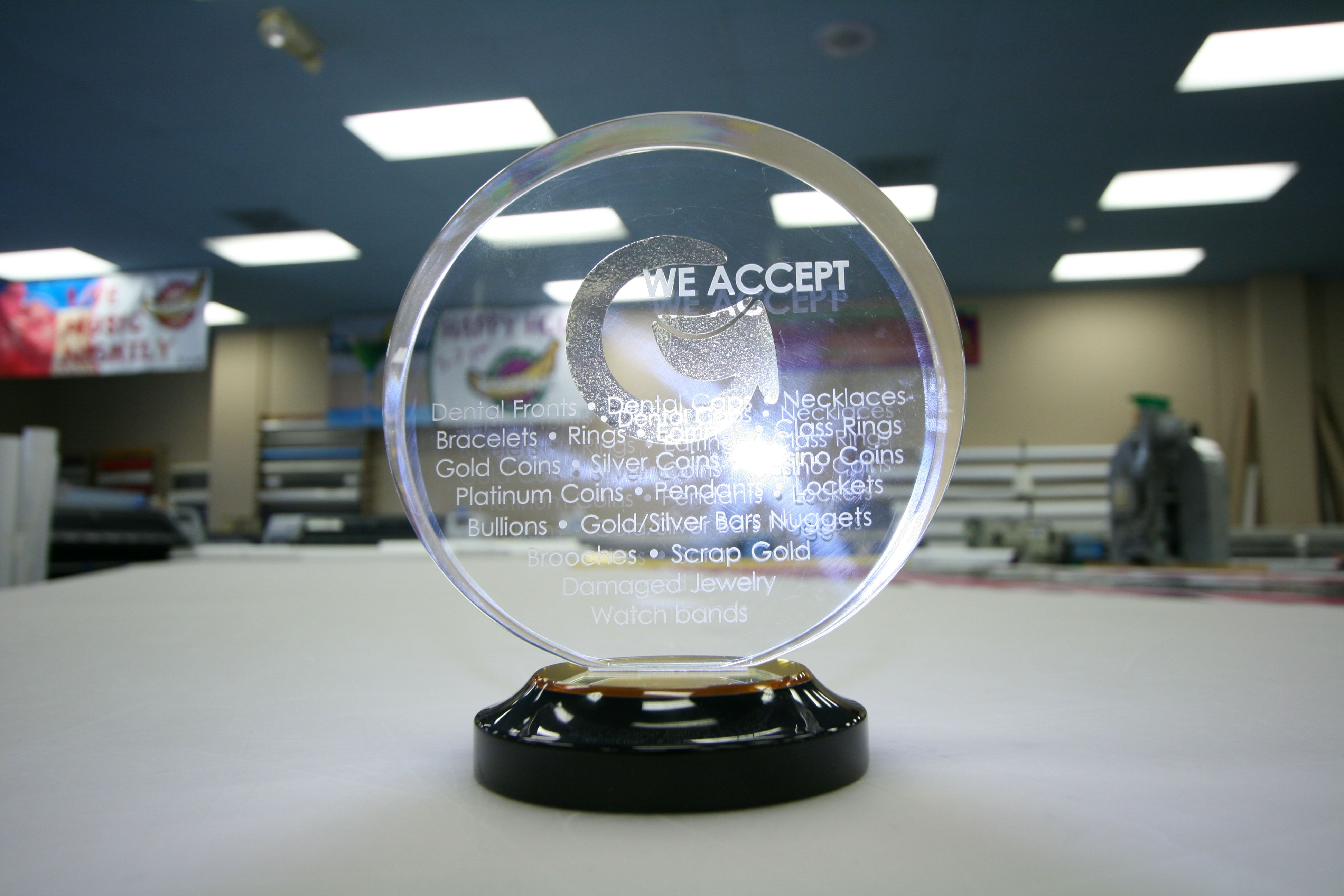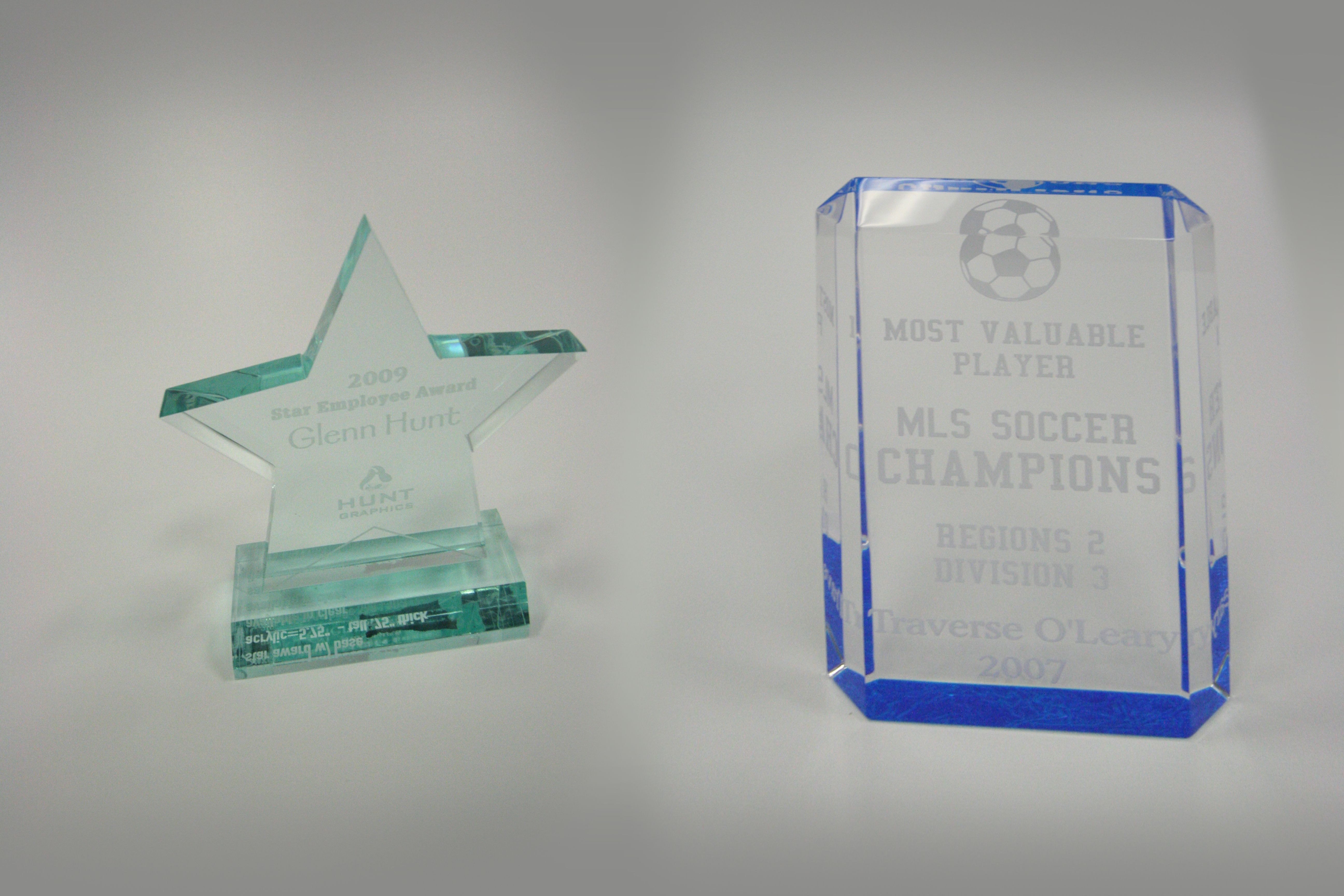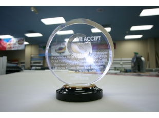 Recognition is the greatest form of flattery, and a personalized reward from Signs By Tomorrow will make anyone feel special. We specialize in making custom printed and engraved acrylic awards, however we also have the capabilities to make routed wooden stands and engraved metal plates with any number of other custom materials. Our custom acrylics can be achieve any level of detail and personalization, transformed into memorials with etched or engraved photography. Custom logos and artwork can also be replicated onto our acrylic awards at no extra cost!