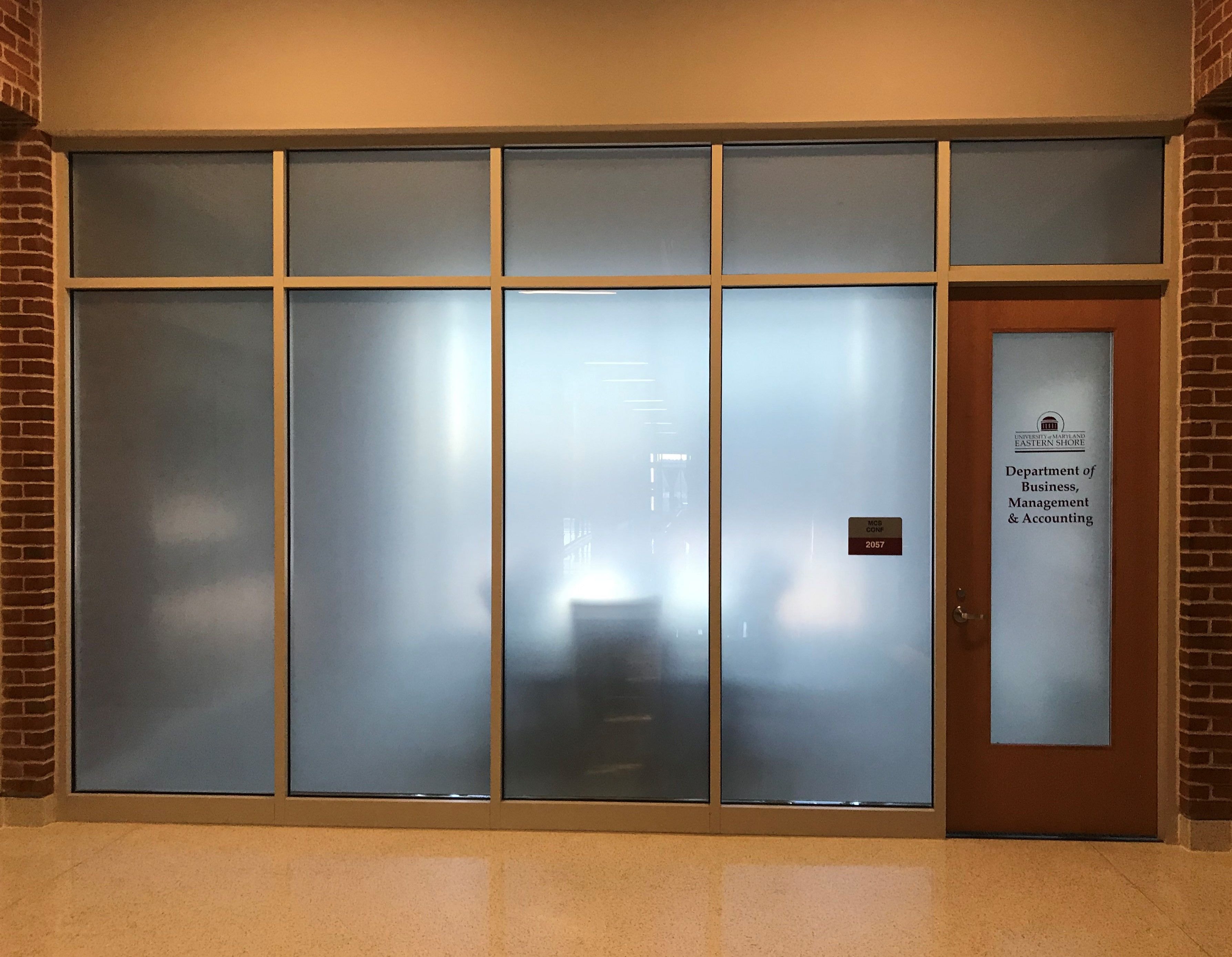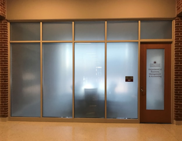 When you want to create a more sophisticated atmosphere or simply create a feeling of privacy, consider using etched glass vinyl to create a frosted glass look. This is a popular choice for conference room windows or executive office doors to help maintain privacy when it’s needed.