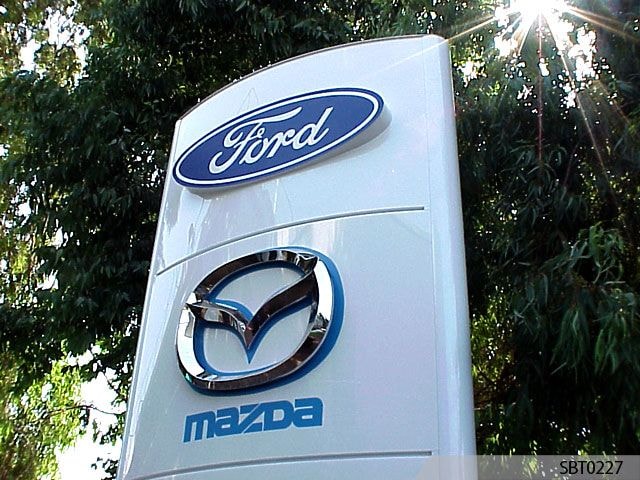 Single-business pylon signs often feature one large lightbox to showcase the company’s name and logo. Pylon signs for malls and shopping centers, on the other hand, consists of several lightboxes built into a base made of metal, stone or brick. Each tenant's logo is featured on a separate lightbox face. This layout promotes the presence of more than one business.
